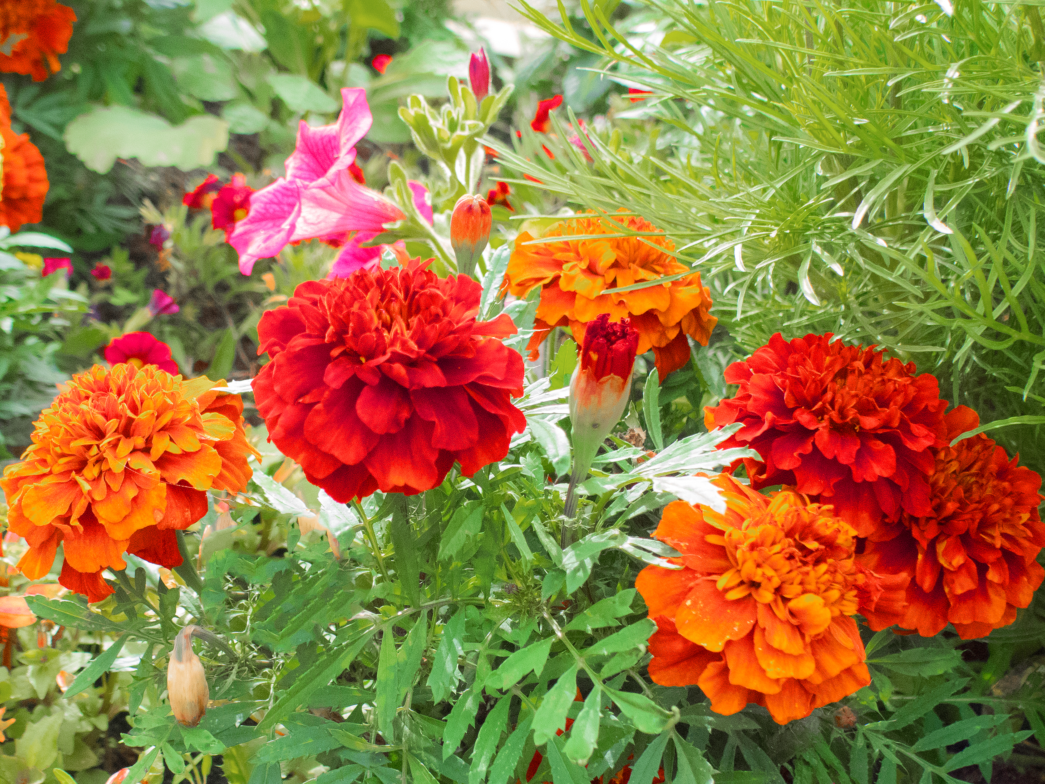 Marigolds! Not perhaps the prettiest of flowers, although they do add some great colour. And yes, they are a bit flouncy and prone to be eaten by slugs. But their incredibly strong, citrusy aroma reminds me of days gone by and of hot, dry summers (chance would be a fine thing).