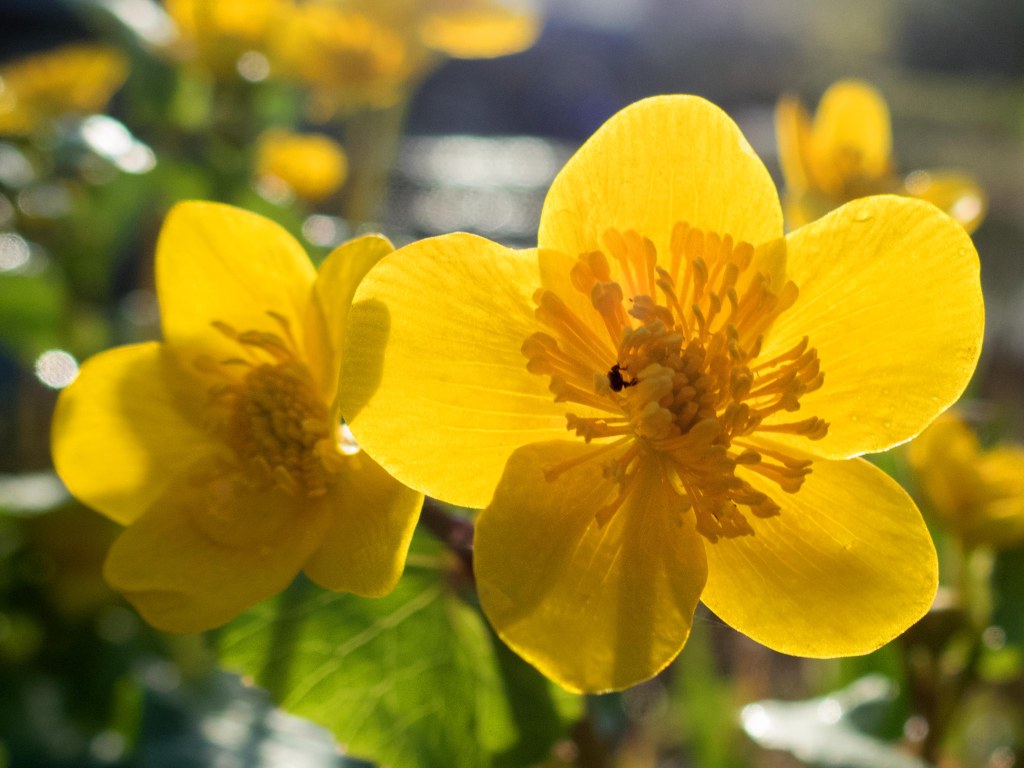 The Marsh Marigolds are particularly lovely, especially with the sun shining through and a little bug feeding!
