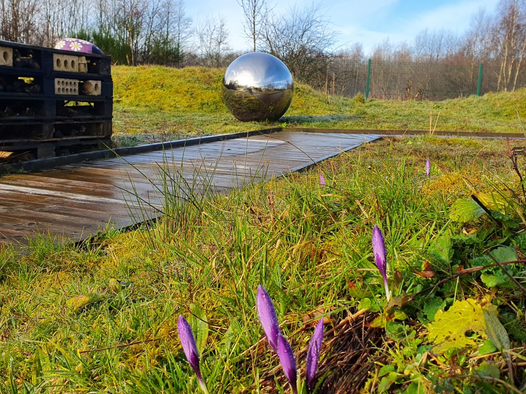The Amberswood wildflower garden is is slowly coming to life. There are a few crocusses which have appeared from somewhere.