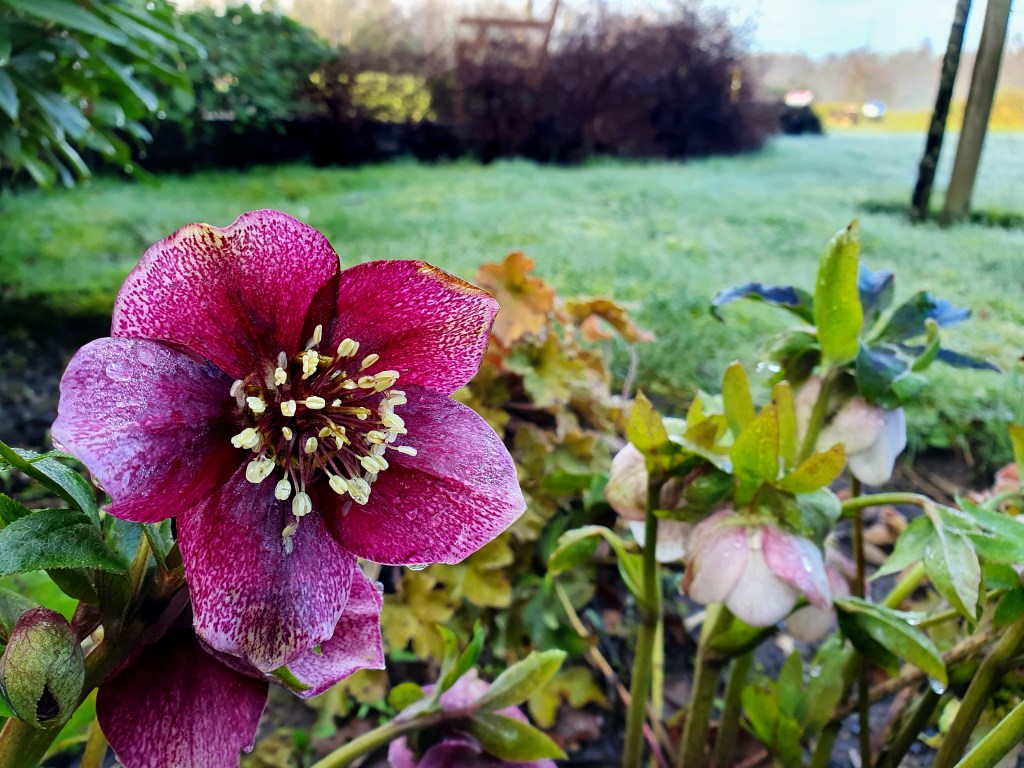 The hellebores are in full flower now. A volunteer at the hospice gave us some last year and they are looking beautiful.